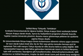 Kırıkkale Üniversitesinde bir öğrenci kulübü, Dünya Arapça Günü vesilesiyle İstiklal Marşını Arapça olarak okudu. Ayrıca bu faaliyetlerini programın afişinde duyurdu. Tepkiler üzerine üniversite yönetimi, durumu mazur göstermeye yeltenen bir açıklama yapma ihtiyacı duydu.